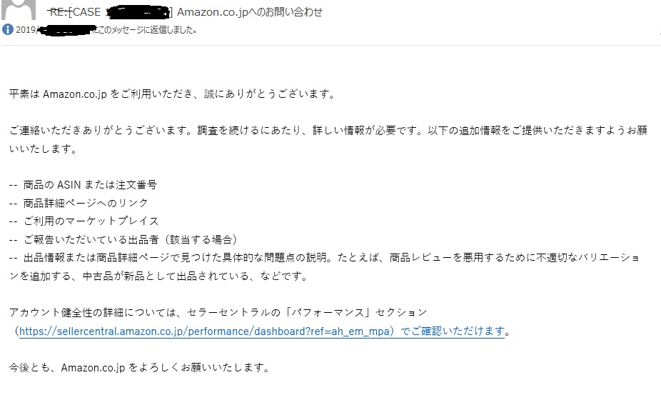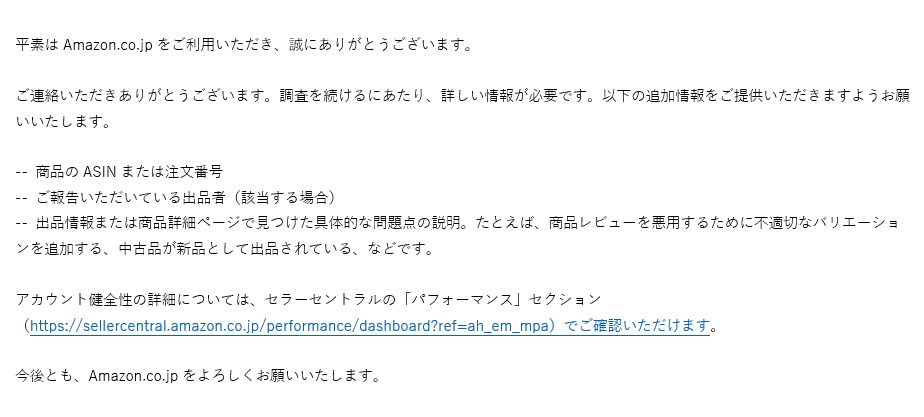 めんどくさいけど 出品商品情報の乱用を報告をしたんだが、ケースからではなくメールのみでこれがきた。